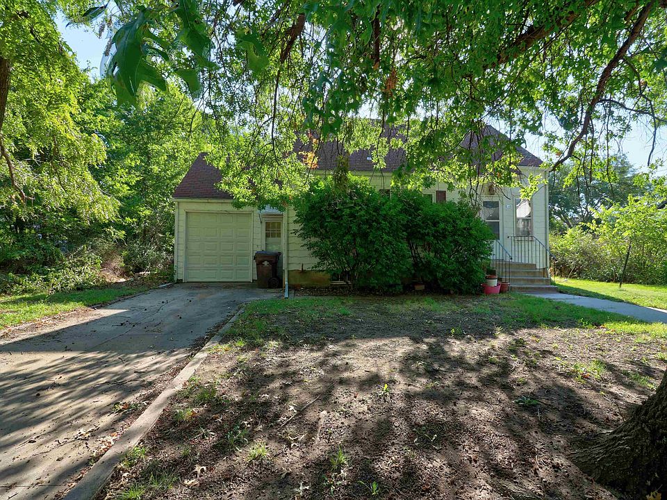 Great investment property on a double lot! Through the front door is a nice big living/dining room. Two main floor bedrooms with one full bath. Great potential of nice hardwood flooring hiding under all the carpet. Full basement including a roughed in bathroom and central air. One car attached garage with new garage door. The double lot includes a workshop and additional detached garage that you can access through the alley. Lots of potential with this charming little home. Selling in AS IS condition.