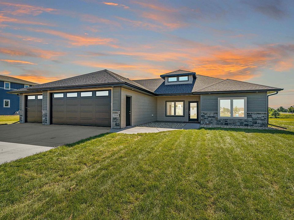 This zero entry 1,534 sq/ft, 3 bedroom, 2 bath home features easy living and design sure to please. High inviting entrance with always warm In Floor Heat throughout entire home. Granite counter-tops and kitchen back splash tile accents with eat in island. There is plenty of room in the master suite which includes walk in Tiled shower and large walk-in closet. Oversize 3 stall heated garage. Mechanical room doubles as a storm shelter with 8” thick fully reinforced concrete walls poured with 4’ footings below and double doors for worry-free storm protection. Large Covered front and back patios for sitting with an Awesome view with no neighbors behind. Located in Sunrise Creek development located just east of Brandon Golf Course.