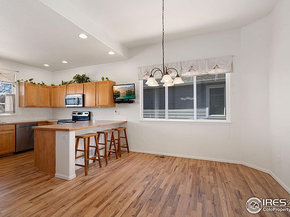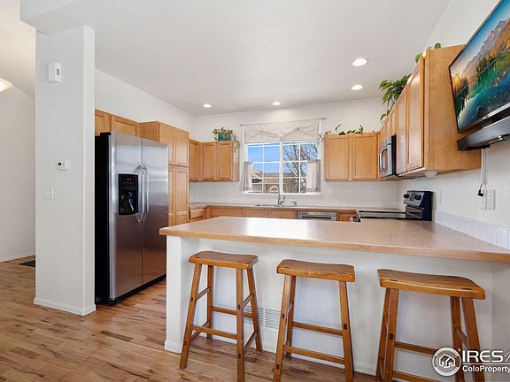 Opportunity Knocks! Situated in SE Fort Collins with close-proximity to parks, peaceful natural areas, Southridge Golf Course, and much more! This is a location where you can truly LIVE. Step under the front covered porch and onto the beautiful hardwood floors that span the entire main floor. Kitchen features include the full complement of included sleek stainless-steel appliances, well thought out design featuring a peninsula with a breakfast bar and dining space nearby. Just a few steps down is the spacious living room that has direct access to the fully fenced backyard. Also, on this level is a powder bathroom and laundry area just off the 3-car garage. Upstairs awaits the primary suite that boasts a full private bathroom and as expected a walk-in closet. Three secondary bedrooms and a full shared bathroom complete this upper level. There is also an unfinished level for your storage needs or future custom finishing. If a high-quality outdoor living space is on your list this property will deliver with a fully fenced backyard featuring a raised irrigated garden box and a plum tree which make it truly an outdoor oasis. Other fine features include: high efficiency furnace, newer exterior paint (2021), newer dishwasher ( 2023), NEW Roof (2025) NEW garage door opener (2025), NEW carpet throughout (2025). This home has been carefully maintained, respectfully priced, pre-inspected for your confidence, and is ready in every way.