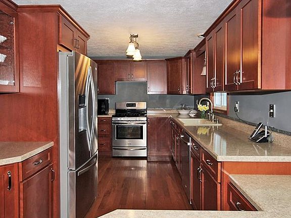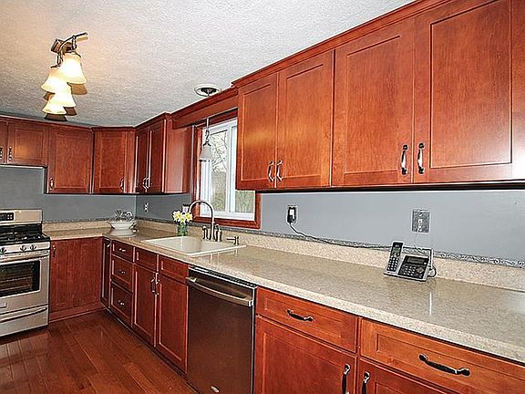 This charming Colonial home with open floorplan is a gem! Updated kitchen with numerous cabinets, breakfast bar and wonderful counterspace. The dining area features a brick fireplace, recessed lighting and sliding doors that lead to the deck that offers a beautiful view. The living room is open to the dining area and offers built-ins and recessed lighting. The first-floor powder room has been updated. Spacious master suite with walk-in closet and private bath with new shower stall. There are 3 additional spacious bedrooms and a main bath. The lower level is finished and there is also an enclosed sunroom that leads to the backyard. Enjoy easy access to the trail from the backyard.