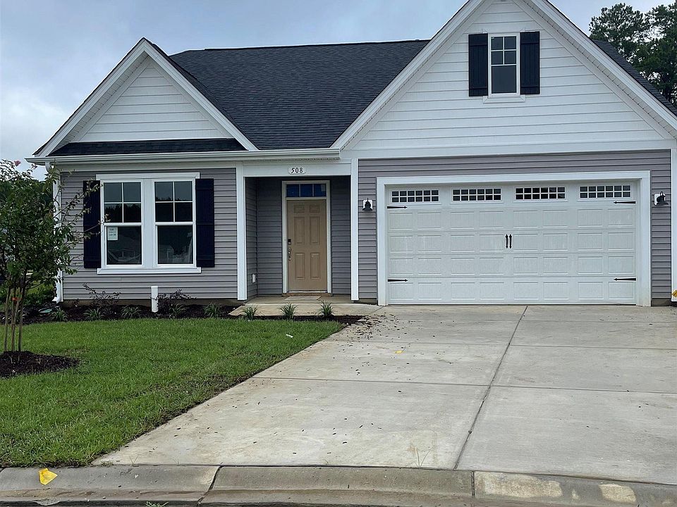 With over 1700 heated square feet, the Coastline is a spacious retreat complete with coastal-inspired architectural accents, outdoor living areas, and an enormous great room. This home has 3 spacious bedrooms and 2 full bathrooms. Enter the Coastline from a covered front porch or two-car garage and easily unload in a large mudroom area with a bench for seating. Follow the foyer to the great room and connecting dining area, which makes for an enormous space. This home has a gourmet kitchen allowing for the perfect space to entertain family and friends. From the dining area transition to a picturesque covered porch for your morning coffee! The owners master suite, among two additional first-floor bedrooms, features his and her walk-in closet, tray ceiling, double vanity, and deluxe seated shower. The Coastline is bound to be your perfect fit! All your needs and wants are within reach at Heritage Park, close to medical and professional services, dining and entertainment, recreation and sports, Cherry Grove Beach, North Myrtle Beach, and even schools are close by with easy access from Hwy 9. Discover and explore Heritage Park today!