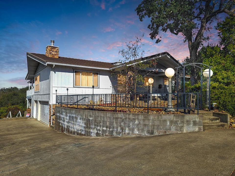 Here is your opportunity to own one of the largest lots in The La Contenta Golf Course Community! This property offers .80 of an acre and backs up to the pond located on the 5th Fairway with gorgeous views of Oak Studded, Golden Hills. With no neighbors behind you- There's a true feeling of privacy looking out from the deck. Bring your visions and toolbelt to renovate this home to your liking. The main level features an open, expansive area with a kitchen, dining and living room combo. The kitchen cabinets were all custom made by the original owner. Master Bedroom offers access to the back decking, a large walk-in closet an oversized walk-in tiled shower plus a sunken soaking tub. One of the guest bedrooms features a walk-in closet with lots of shelving, excellent for a craft room or office. The lower level features a room that could be utilized as a bedroom, game room, office or den. There are laundry hookups in this area, along with a full bathroom and full access to the basement, offering a lot of extra storage space. The 3 car garage has built-in cabinetry and a work bench. Property also offers a variety of mature fruit trees, sitting areas, a horse shoe pit near the pond, and extra storage under the decking. It is truly one-of-a-kind with a lot of potential!