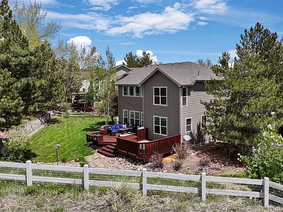 The double staircase leads up to the second floor where you will find the primary suite complete with a walk-in closet and 5 piece bathroom. There are 3 additional bedrooms and a full bath on this floor as well. The finished basement adds versatility with an additional bedroom and generous entertainment space, perfect for hosting gatherings. Plus, the basement is plumbed for a bathroom, offering potential for further customization. Originally selected for its captivating backyard, this home presents a serene retreat backing to open space, complete with a large deck and a soothing hot tub - perfect for relaxation and entertaining. Enjoy the expansive lot that provides ample space for outdoor activities and gardening enthusiasts. Impeccable updates include fresh paint and new carpet throughout (2024), ensuring a modern and inviting atmosphere. In addition, the hot water heater was just installed ensuring comfort and efficiency. Take advantage of world-class golfing opportunities at the nearby Sanctuary and the Ridge, complemented by access to award-winning schools and picturesque parks within walking distance. Outdoor enthusiasts will appreciate the proximity to Daniels Gate Park and Buffalo Preserve. Enjoy the convenience of easy access to I-25 and nearby shopping destinations, making daily errands a breeze. Don't miss your chance to experience luxury living in this exceptional property - schedule your tour today!