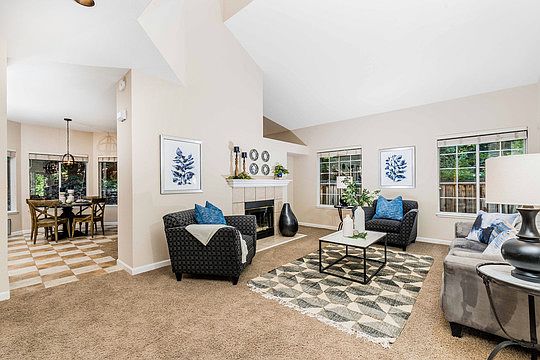 Wonderful and well maintained three bedroom, two and a half bathroom townhome in the desirable Black Diamond community of Clayton. You are welcomed by an open floorplan, vaulted ceilings and tons of windows allowing for lots of natural light. Main level features a formal living and dining room, half bathroom, large eat-in kitchen and cozy family room with slider access to the private back patio and yard. The upstairs has a full hall bathroom and three nice sized bedrooms, including the spacious master suite with en suite bathroom and walk in closet. Close to community pool/spa and conveniently located near downtown Clayton and Oakhurst Country Club. Feels more like a single family home and is a must see!