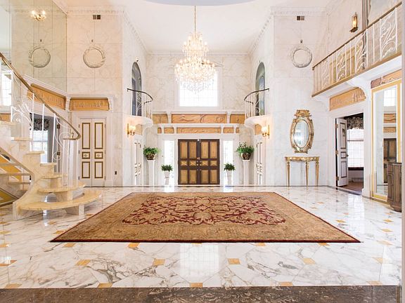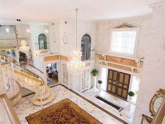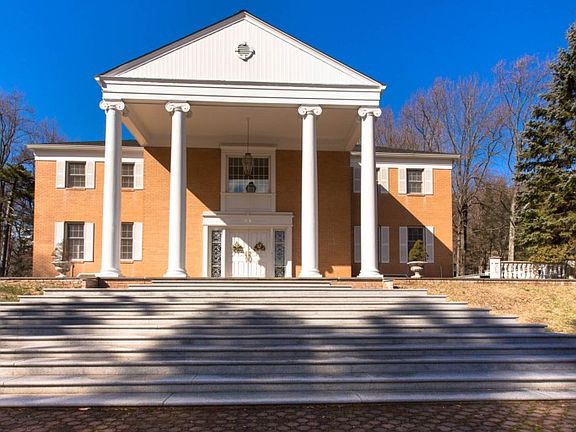 The winding private drive with its newly paved and landscaped borders, grand granite steps measuring 36'x24' leads to the dramatic entry to this approx. 8,000 sqft. stately all brick mansion sitting on private 6.02 acre wooded lot on top of the hill boarding national Historic Park, Jockey Hollow, in NJ one of the most prestigious townships, Harding Township. The large 2 story foyer has imported marble floors, hand painted frescos, columns and open spiral stair case. Delight in the banquet size dinning room has 3 chandeliers, fireplace and bay window. The spectacular 2,600 sqft. great room and spacious kitchen with both gas & electric cook tops surely are impressive. The sunken home office and library are also on the main floor. The luxurious master suite with fireplace, sitting area and ample walk-in closet. The oversize master bath has a sunken soaking tub, whole piece imported marble stall shower, commode, bidet, and double sinks with granite counter. There are 4 spacious family bed rooms occupy 2nd floor, each with ample closet, crystal chandelier, and access to full bath. The 4,000 sqft. finished walkout basement, the 3,500 sqft. Tennessee crab stone patio wrapped with railing, the stone garden with 2 gazebos provide endless possibilities. Gleaming oak hardwood floors with walnut inlaid borders in the great room, library, home office and all bed rooms. There are 5 full baths and 3 half baths. Most of the baths offer solid brass fixtures with imported marble counter tops and painted sinks. this home is also equipped with an elevator. There are 5 heating zones & 4 cooling units. Custom details and quality craftsmanship throughout and very best describe this extraordinary residence.This stately manor home is ideally located for easy commute to NYC by nearby Morristown Train Station & major highways to Newark International Airport.