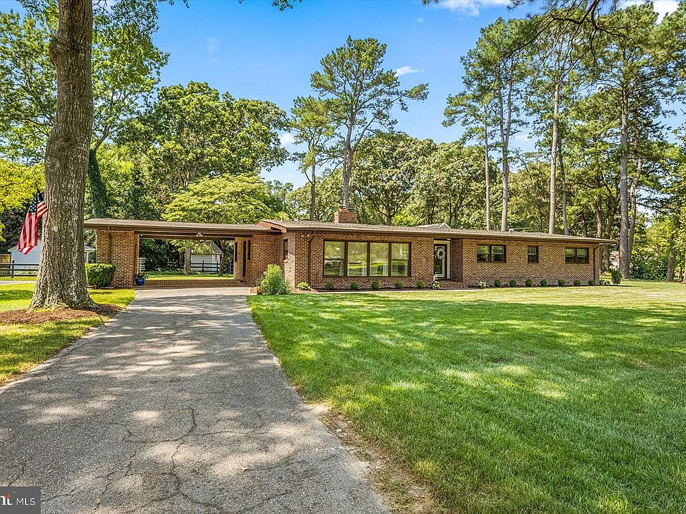 This exquisite mid-century modern residence is nestled within the meticulously landscaped Tony Tank neighborhood. Poised on a corner lot embraced by lush trees, this all-brick ranch home affords unparalleled privacy and a serene backyard retreat. Boasting a seamless single-floor layout, the residence comprises 4 spacious bedrooms and 2.5 baths. Recently renovated, this home epitomizes timeless elegance and attention to detail. Its impeccable upgrades include a new roof, windows, and sophisticated lighting fixtures, accentuating the allure of the stunning hardwood flooring that graces every room. The bathrooms have been tastefully modernized, while the electrical wiring, irrigation system, and backyard fence have been thoughtfully replaced and enhanced. The addition of a detached storage shed further enhances the functionality of the property. The heart of this home lies within its expansive kitchen adorned with custom cabinetry and state-of-the-art stainless steel appliances. A gracious living room awaits, complete with a charming wood-burning fireplace, while a seamlessly connected dining area leads to a captivating screened-in porch. Offering versatility and potential, the full basement encompasses a partially finished area, ideal for an office, playroom, or family room. The remaining half of the basement is currently utilized as a laundry and storage space but holds the promise of future expansion. The idyllic fenced-in backyard invites leisure and entertainment, with a patio adjacent to the porch, creating a harmonious setting for gatherings. Completing this remarkable property is a carport with additional storage, catering to the practical needs of the homeowner. This home also has a bomb shelter area in the basement. Call today for your showing!