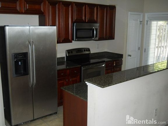 Townhouse located in gated community that features tennis courts, club house and swimming pool!! Home features hardwood floors, custom paint, fireplace in spacious living room, kitchen features stainless steel appliances including microwave and dishwasher, master bedroom features vaulted ceiling, private bath with custom lighting, garden tub, and ceiling fan, washer/dryer connections, private patio, single car garage, and is totally electric