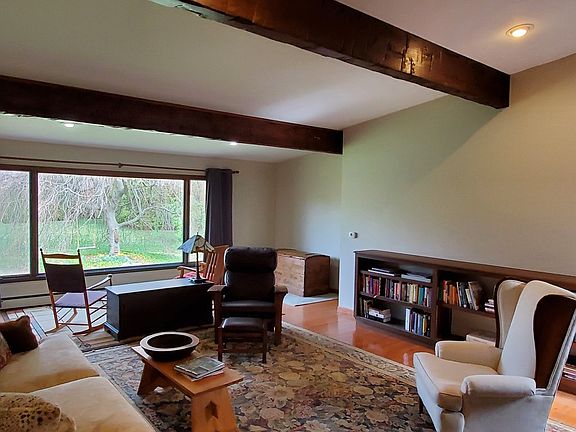Extremely charming contemporary home on just over 1.5 acres. The home has been maintained meticulously, and it is obvious. Exposed beams, solid construction, and an excellent flow give this home a very unique presentation. The secluded back porch provides a peaceful and private place for relaxing and entertaining. A wide variety of trees and gardens on the property provide privacy from neighbors and passing traffic. The partially finished basement could be an additional entertaining place, which connects to the garage. This home is truly one of a kind.