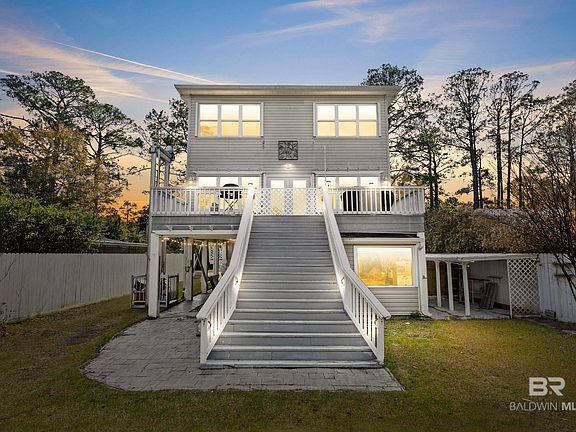 Don't miss this beautiful waterfront home that sits directly on the Intacoastal Canal in Gulf Shores. A very spacious 4 bedroom, and well appointed 3 1/2 bath home is the epitome of coastal living. Remodeled kitchen, with granite counter tops, large island, stainless steel appliances, including a new refrigerator in 2023, a wet bar and wine cooler. Large walk-in pantry and laundry room including new washer and dryer. Primary bedroom/bath is also on 2nd floor with a second primary bedroom on the 3rd floor offering spectacular views of the garden and canal. One bedroom is being used as an office and the other bedroom share a bathroom. Large deck to sit and watch the activity on the waterway with a convenient outdoor lift for groceries and other items. Bahama shutters on the front window add to the curb appeal. The covered boat house has a boat lift and the upper deck is the perfect spot to watch the dolphins and boats go by. Irrigation system, shed for garden tools, work room 12 x 13 with work benches. Fenced yard and large 3 car carport. Excellent location just West of the Gulf Shores Waterway District where you can enjoy many restaurants, festivals, a public boat lauch, the Recreation Center, tennis courts and much more. Located on the westside of Hwy 59 with easy access to the beautiful white sandy beach on the Gulf, so don't wait. Book your showing today. Buyer to verify all information during due diligence.