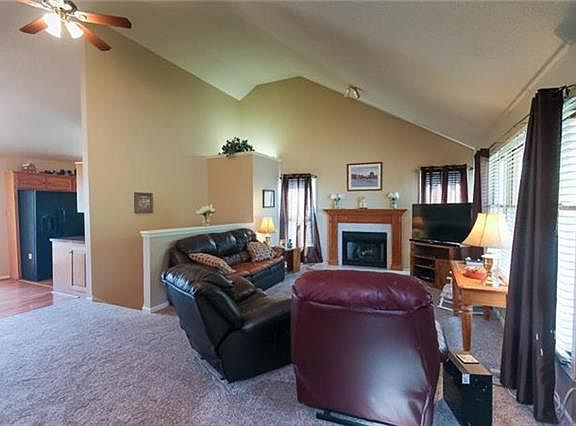 - Features: Carpet, Ceiling Fan(s), Fireplace