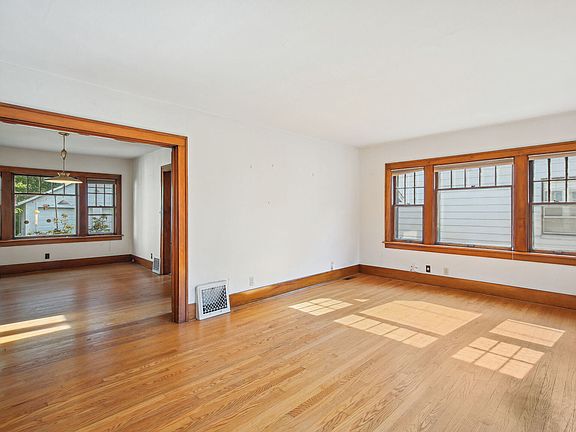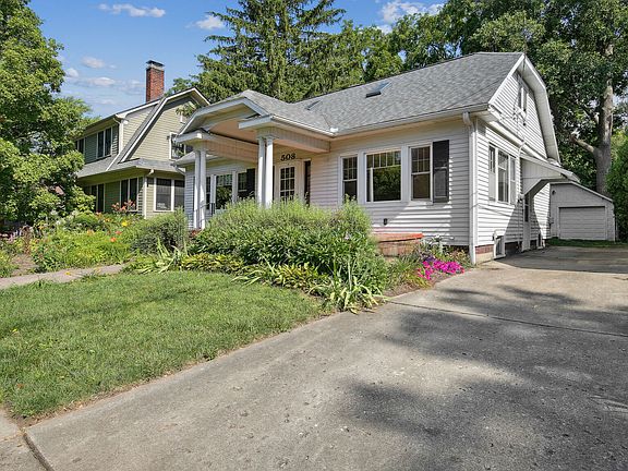 This charming home boasts three bedrooms and two full bathrooms, providing a generous amount of living space. As you step inside, you'll be greeted by the timeless appeal of original hardwood floors, complimented by numerous large windows that flood the home with natural light. Adjacent to the living space, a formal dining room awaits, providing delightful views of the mature landscaping in the backyard, creating a tranquil ambiance for your meals. The main floor also offers two generously sized bedrooms. One of the bedrooms includes a convenient attached office space with built-in bookcases. Upstairs, the second floor is dedicated to the primary suite, complete with built-in dressers, spacious closets, and a full bathroom. The home also features a full basement and a detached two car garage, perfect for all your storage needs. Don't miss this opportunity to see what this home has to offer.