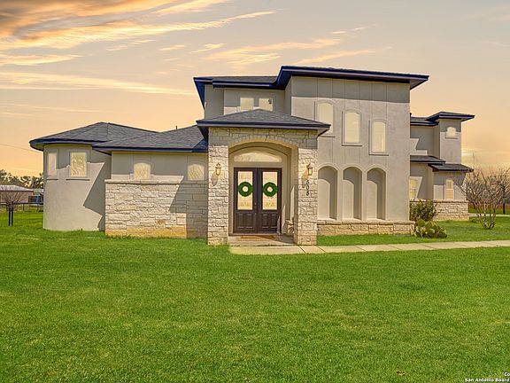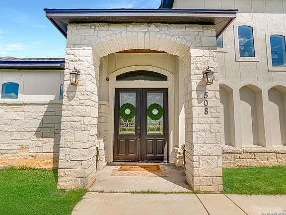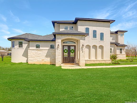 Welcome to your dream home at 508 Wagon Train, La Vernia, TX, 78121, a stunning single-family masterpiece designed for the discerning family seeking the perfect blend of luxury and comfort. This 4-bedroom, 3.5-bathroom estate sprawls over 1.1-acres of meticulously manicured land, presenting an unparalleled living experience. From the moment you step inside, you'll be enveloped in elegance. The spacious living room offers panoramic views of the lush landscape and flows seamlessly into the chef's kitchen, featuring an oversized island that's perfect for entertaining and fine dining. State-of-the-art appliances and thoughtful design make this kitchen a culinary haven. The master suite, located on the ground floor, is a haven of tranquility. Indulge in the spa tub or the grand walk-thru shower, and enjoy the direct access to the verdant backyard, which beckons for outdoor enjoyment. The second floor houses an expansive game room that leads to a balcony, providing a spectacular vista and an ideal spot for entertainment or relaxation. Outside, the property boasts a large covered patio complete with an enchanting outdoor fireplace, setting the stage for memorable Texas evenings. A bonus 20x30 workshop/garage with electricity extends your space for projects and storage. Custom features such as surround sound, unique ceiling treatments, and a built-in hall tree/mudroom elevate the home's functionality and aesthetic appeal. The extended garage, wood-look flooring, sprinkler system, and an elegant iron fence complete the property's offerings. This home is a sanctuary of taste and sophistication, promising a lifestyle of unrivaled comfort and class. It awaits a family ready to create cherished memories in a setting of absolute perfection.