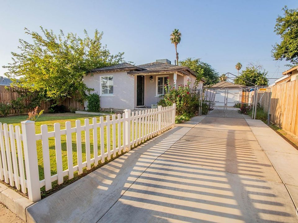 Such an adorable home. From start to finish you will love this one! Cute 1 bedroom 1 bath with shutters throughout, loaded with updates, roofing, ac unit, flooring, lighting and more! Even comes with an indoor laundry room. The yards are well maintained with a large covered patio area. Detached garage, a large storage unit behind that, and raised block planters for the garden enthusiast! Darling white vinyl picket fence in the front yard, while the long driveway is cross fenced for added security, and security screen doors at front and back so you can enjoy a nice breeze. This is such a pleasant home, perfect for the person wanting a small, yet cozy, and easy home to maintain.