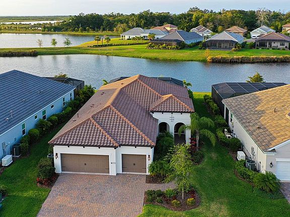 Live in The Estuary, among 50 residences situated on a generous 53 sprawling acres. This pristine NW Bradenton maintenance assisted development is gated and borders Robinson's Preserve. The location is absolutely stellar! If you're looking for peace and quiet you have found it here. This 2018 Bright Meadow layout features a 3BR/2BA split plan that includes a large den/office with French door entry, walk in closets in all the bedrooms and a 3 car garage. This is a wonderful comfortable open floor plan with natural abundant lighting. The generously sized Master Suite overlooks the lake and caged pool and offers two large closets, dual sinks and a glass entry shower. Watching the waterfowl on this beautiful lake as you lounge in your saltwater pool will be captivating and a pleasure. The sunset views are simply breathtaking! Your gourmet kitchen showcases a quartz countertop island, stainless steel appliances, under-mount lighting, European sized cabinets, double oven, gas range, breakfast nook, pendant lighting and walk-in pantry. Volume tray ceilings, plantation shutters, pool tanning shelf and outdoor patio pavers are all additional amenities. This home is special and emanates a warm and inviting karma that you'll love. No need for flood insurance as the home is in an X FEMA zone! Be sure to view the 3D tour!