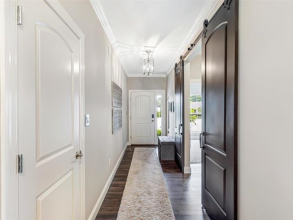 OPEN SUN 8/22: 1-3PM ; Located on the community pond, this nearly new, stone-front ranch is the home of a lifetime! Inside youre immediately greeted with 9ft ceilings, crown molding & gorgeous engineered-wood floors. The main floor showcases an off-white Kitchen with top-lit glass display cabinets, built over stunning quartz countertops & gas appliances. The Great Room highlights a grand fireplace w/ stone mantel & textured wall that tapers up to the ceiling. A window wall overlooks glittering waters & comes equipped w/ remote shades, for penthouse-quality style & convenience. The Owners Suite is a gigantic 15x21 bedroom with pond views, a bathroom w/ dual sinks, separate tub & shower, plus a closet system by California Closets. The lower level is perfect for entertaining - Along with its own bedroom and full bathroom, the walkout basement has a huge Rec Room & Kitchen w/ sink, fridge & bar. With its tranquil views, the yard includes a composite deck, patio, uplighting & irrigation.