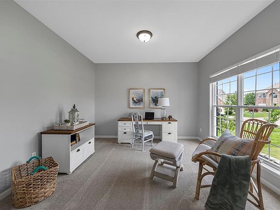 A charming covered front porch welcomes you to this tidy, 2 story home w/ high 9 foot ceilings and plenty of space to gather friends and family. Walk in to engineered wood floors, find a main floor office and open floorplan. Gather loved ones in great room with gas fireplace or eat-in kitchen with center island. New stove in the kitchen. Convenient mud room off the 3 car garage. More than 2600 square feet of space w/ new carpet and fresh paint to make this home move-in ready perfection. There's a deck off the kitchen to take in the partially fenced backyard. Find all bedrooms upstairs incl. master suite w/ separate tub and shower. Great storage w/ walk-in closets in all bedrooms. Unfinished walk out basement w/ roughed in bath and high pour. Wyndgate is a very friendly community w/ pools, and a playground for family fun. Wentzville Schools. Great access to highways and all shopping! Showings begin 5/31. Make your appointment today!