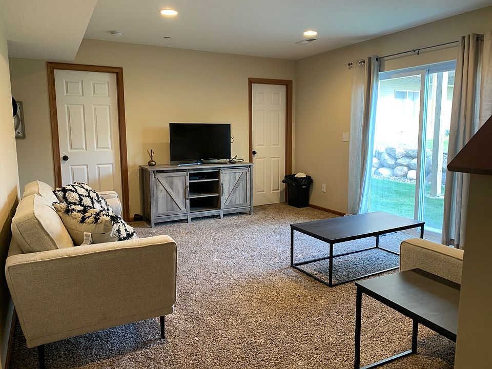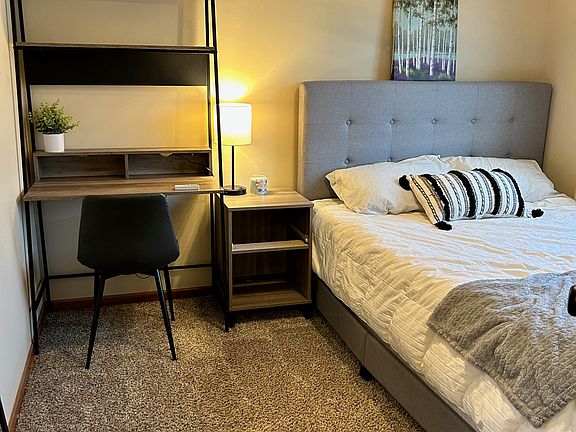 Looking for two roommates for an end lot townhouse rental available now. Newly built in 2019. It is in a friendly and safe area in the NW part of town. Only 1.5 miles from Mayo North Lot Shuttle. Brand new washer and dryer, water softener, Quartz countertops, stainless steel appliances, patio area, and common spaces are fully furnished. No need to mow the lawn or shovel. Free fast-speed internet, Netflix, and Cable TV. Only a $400 deposit. Short-term lease available. You would have your own bedroom in the basement and bathroom, living room area, and garage parking. Rent would be $850, and utilities are included in the price. The bedroom isn't fully furnished but the living room is. Has closest. Must be okay with French Bulldog. Very friendly. Availability date later. Can do short or long term leases.