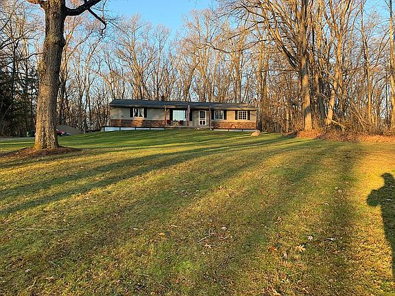 Great ranch style home with a basement and an attractive open floor plan. 3 bed 1 bath. Hardwood floors throughout main part of home. Newer carpet in bedrooms. Large living area wired for surround sound. Updated stainless appliances and farmhouse sink. New paint throughout entire home within the last 4 years. Full basement with Fresh coat of epoxy on the floor. All exterior lighting has been updated to High qualityLED fixtures with dusk to dawn capabilities, motion sensing, and brightness adjustments. Patio flood lights are Bluetooth capable. Covered patio and grilling area include power/outlets/mini fridge/sink and a ceiling fan for those hot days. Roof and furnace replaced in 2013. Bathroom remodel in 2018. New water heater and softener in 2019. Tree lined acreage includes large front and back yard with pole barn completely finished with all the good stuff, power, Central heating and air conditioning, water with slop sink, dry well and wired for TV. shipping container on property will move with homeowner. PRE-APPROVAL/PROOF OF FUNDS REQUIRED FOR SHOWING.