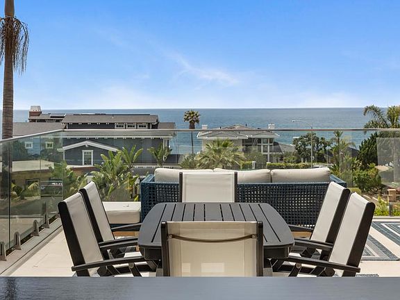 Beach Living at its FINEST! ** FULLY FURNISHED ** Enjoy panoramic Ocean Views with year-round breathtaking sunsets at this gorgeous contemporary showcase. Offering 5 spacious bedrooms, 4 full bathrooms, 3981 sqft **PLUS** nearly 1,700 sqft of outdoor living space! The flawless floor plan incorporates a state-of-the-art kitchen with adjacent dining and living spaces, 3 main level bedrooms including a large guest suite, the upstairs family room opens to an expansive deck with entertainment center and bar overlooking the ocean, an oversized primary suite with stunning ocean views, plus an extra bedroom/office ideal for working from home. A large lot with grassy yard in front and back, above ground SPA, outdoor shower, BBQ station, and available for move-in this September 1st. Access to Terramar's private beach is available with min-6 month lease agreement.