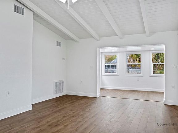 Looking to live life on the water, this property is for you. Enjoy your own piece of the Gulf! Minutes to the Hernando Beach Club. Driving to the property you will drive through a beautiful Hernando Beach neighborhood that is close to local restaurants and amenities. Entering through the charming front door you will find a unique home that is updated with fresh paint, new wiring, new laminate floors and high impact windows. The large family/living room has vaulted ceilings with exposed beams that add nice character. Add a cozy couch and cute rug to make this room your own! The walkthrough kitchen is updated with new cabinets and beautiful butcher block counter tops. Ready for the chef of the family. The hallway in this home has two linen closets for needed storage. The bedrooms of this home are tucked on the left offering privacy from the main areas. Both bedrooms are spacious and well lit. The sunroom/bonus room is perfect for a seating area or a place to transition into outdoor living. Relax on the open patio in your backyard or enjoy your very own dock. Do you enjoy water sports, fishing, or just enjoy sitting on the water? This backyard oasis awaits you. A bonus of this home is there is a utility room which is accessed from the patio. In this utility room you will find a washer/dryer hook up, water heater, electric panel and AC unit.