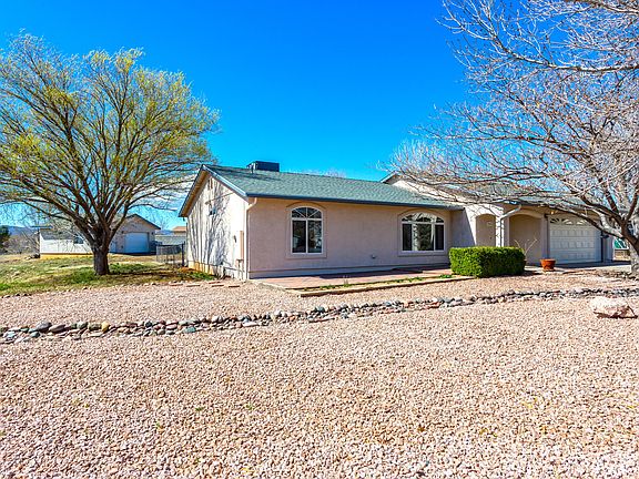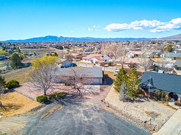 Drive to the end of the cul-de-sac to this oversized half-acre Prescott Valley home. Gracious vaulted ceilings in the living room and kitchen with large picture windows and a skylight to let in natural light. A fantastic kitchen layout with plenty of counter and cabinet storage space. Access to rear covered patio for BBQ and the views of the Bradshaw Mountains. Split bedrooms with two guest rooms and adjacent full bath. Oversized master bedroom with views to Bradshaw Mountains, walk-in closet and 3/4 bathroom. SO much additional storage space in the laundry room. Appliances included, NEW roof as of 1-19 and NEW HVAC as of 1-19. A major bonus for you toy lovers or gear heads- a newer 2 car detached garage for your needs. Don't miss out on this immaculate Prescott Valley home