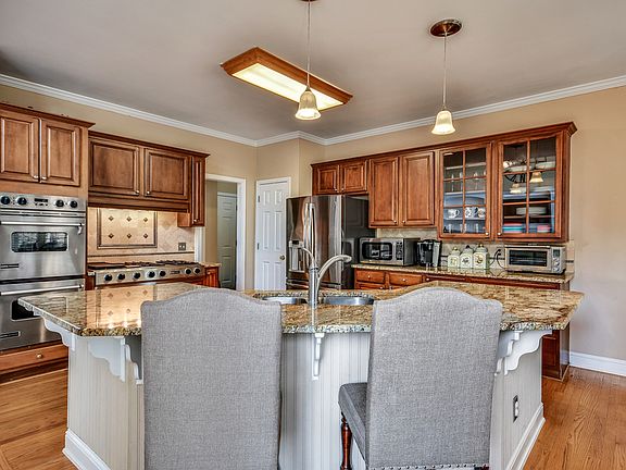 - Kitchen Features: Breakfast Bar, Cabinets Stain, Pantry, View to Family Room, Stone Counters, Kitchen Island, Breakfast Room