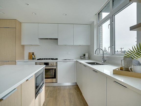 Southwest corner, sub-penthouse level two bedroom and two bathroom mountain and park view home in Eastpark by Boffo Properties. This bright and well designed home is the best two bedroom layout in the development and features over height ceilings, a functional floorplan with expansive living spaces and a large 268 sqft outdoor space that is perfect for entertaining, great separation between the bedrooms, and plenty of in-suite storage. The Chef's kitchen is complete with a gas cooktop, integrated stainless steel appliances, large island, and extensive storage. Just steps to some of Vancouver's best restaurants and shopping, the 130-acre Queen Elizabeth Park, Hillcrest Community Centre, Nat Bailey Stadium, and transit, you'll love the location. One secure underground parking included.