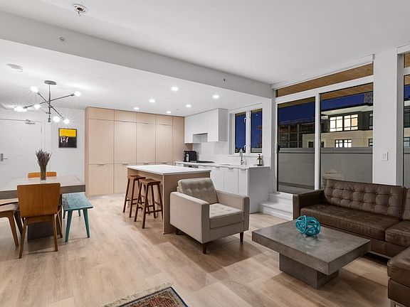 Patio, Patio, Patio - Get ready for summer with this stunning 2bed/2bath penthouse boasting two private outdoor spaces incl. a roof top deck showcasing beautiful 360 degree views of city, mountains and beyond. Enjoy contemporary aesthetics throughout with sleek dual tone kitchen with SS appliances, large island, overheight ceilings and wide plank oak flooring connecting the main living space that extends to the large SW facing wrap-around outdoor deck perfect to relax and entertain. Generous bedrooms and spa-like bathrooms impress the eye and assure to relax. All of this, elevated by the large the roof top deck, perfect with gas hookup and ready to enjoy this summer. Steps from Queen E Park and everything Main Street has to offer.