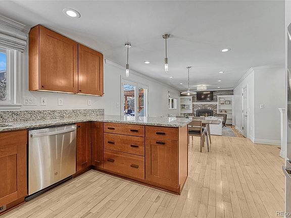Beautifully remodeled home in the desirable Cherry Creek Village! Located in the heart of the Denver Tech Center, this quiet neighborhood is just walking distance to the Cherry Creek State Park & Reservoir, plenty of shops and restaurants and the highly sought after Cherry Creek High School! This home has been updated to include a beautiful, open kitchen with dark cabinetry, granite countertops, newer stainless steel appliances and a peninsula for extra counter seating. This space is ideal for entertaining, open to the dining and family room space, which has a brick, gas fireplace and built-in shelving. Bonus main floor entry space with large windows could be used as an additional living or dining space or could be customized for your needs. The main floor has all 3 bedrooms, including a primary bedroom with private bathroom. The finished basement provides tons of extra living space and an area that could easily be converted into an additional bedroom. Basement has additional bathroom, laundry, with washer & dryer included, and plenty of storage space. Stunning original features remain, such as interior and exterior arches and crown molding. Newer furnace, siding, carpet, appliances and lighting. Solar panels have been paid in full. The private, fenced yard has been professionally landscaped and has a huge patio with hot tub, pergola, chicken coop, a gas line for a grill and plenty of space for entertaining and enjoying our beautiful Colorado weather! Voluntary HOA offers community atmosphere with neighborhood parties! Cherry Creek Schools! Easy access to I-25, 225, the Light Rail system, Park Meadows and Downtown! Must see...this location just can't be beat!