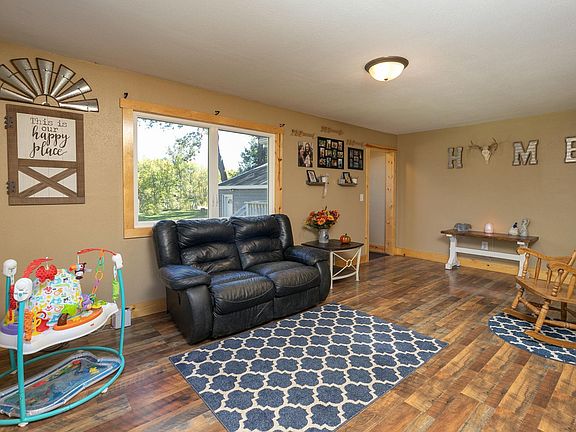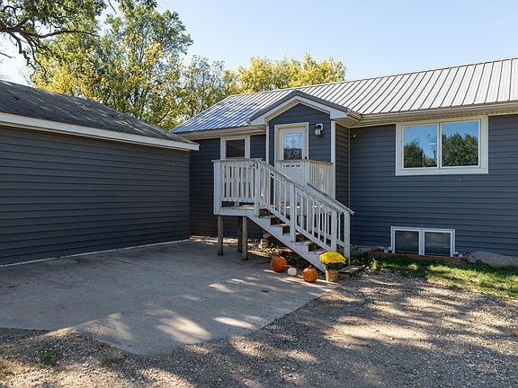 All the joy of country living & only 2.8 miles south of town. This 1990 home was moved onto the site in 2016 with a new concrete poured foundation. All plumbing & electric was then updated along w/new mechanicals. The kitchen has raised panel Hickory cabinets, stainless steel appliances, vinyl plank flooring, pantry & adjoining eating area. Thermal windows, steel siding & steel roof new in 2020. Main floor bath has tile flooring, porcelain tile flooring in lower level bath. The poured concrete basement has 9' ceilings throughout, family room, 2 bedrooms, bath & large utility room. Main level has 2 bedrooms, bath, kitchen-living room combination. Very open concept. Six panel doors throughout. In-floor heat & supplemental wood burning stove rough-in for future use. Central air, 200 amp service, air exchanger, 115 gallon water heater. 2 car detached garage, an extra garage for storage (24x26), quick drive into town & 2+ acres of country space will make this a nice place to come home to.