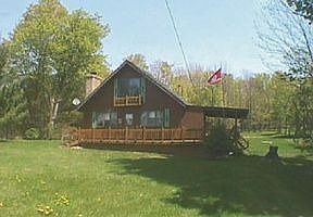 3 bdrm chalet on 40 rolling all wooded acres with natural pond. 2 road frontages - 1320' each. Fireplace wall in living room. New custom cedar treatment, FP full field stone with insert to assist in heating. 30x40 pole with 32x12 lean-to. All repainted inside and out. Custom Oak Cabinets, hood system and built in hutch. 3 side wrap around deck with south end 26x10 covered.