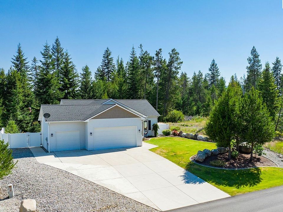 BACK ON MARKET, NO FAULT OF SELLER. Immaculate 3 bed 2 bath 1422 sq ft RANCHER on a ½ acre, includes a 3 car garage AND a shop! This charming home with large picture windows has so much to offer. The vaulted ceilings in the main living area, and beautiful laminate flooring, lead into the large open-concept kitchen, showcasing the stunning dark-stained cabinets. Down the hall is the light, spacious master suite, with the master bath having a step-in tiled shower that includes handicap bars. One of the bedrooms has French doors that are currently being used as an office. The laundry room leads into the insulated garage, with epoxied floors, making for a very clean, well-maintained garage. The fully fenced backyard has a covered patio, a large designated garden area, a dog kennel, and a separate garden shed along with a 24’ x 30’ shop and a 10’ x 30’ lean-to. The shop is insulated and heated with a pellet stove. There is plenty of room for RV parking, with easy access to the shop entrance. The backyard with mature trees and landscaping is a gardener’s delight, making this property a truly desirable home.