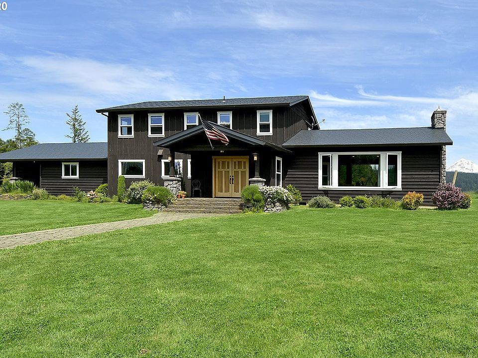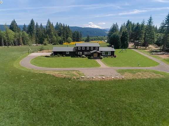 Million dollar Mt Hood View Property! Come own a piece of the country w/trails, garden & timber. Gourmet kitchen w/commercial gas range,custom cabinets & granite. Fabulous Great room w/vaulted wood accent ceiling and stone fireplace. Step out back to large patio area that includes outdoor kitchen, great for entertaining! Upgrades include roof, windows,flooring & kitchen. Family rm on the main sets up well for 2nd master. Barn/shop w/ 2 bays. New swim spa completes the package!
