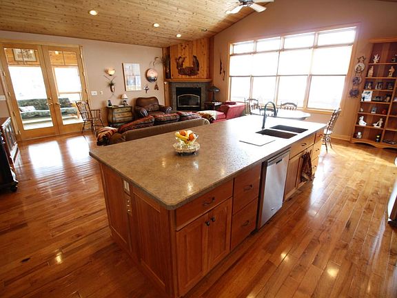 4 Bedroom 3 Bath Year Round Home on 1.94 Acres with 179 Front Feet on Crystal Clear Lake 7. One Level Living, Open Floorplan, Gourmet Kitchen with Cherry Cabinets, Copper Sinks, Walkin Pantry, Large Island and New Stainless Appliances. Great Room Features Amazing Sunset Views, Gas Fireplace, Vaulted Cedar Ceilings. 4 Season Sunroom. Master Suite with Walkin Closet plus a 2nd Double Closet. LL Walkout with Lg Family Room, 2 Additional Bedrooms and Full Bath. Locked Storage Area. Additional 24 X 24 Garage to store your Lake toys. Landscaped Yard with Garden Space and 8X10 Potting Shed, USS.