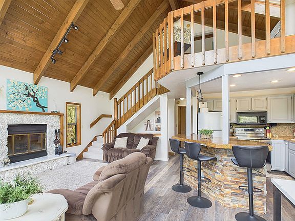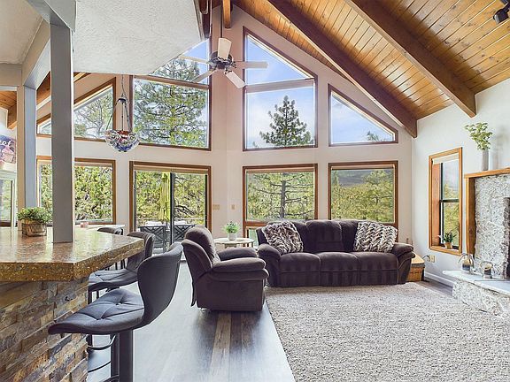 Serenity and comfort greet you at this beautiful home nestled back in the mountains! Tall pines on a large lot give you privacy, while the spacious 2-level Trex deck gives you those sought after Mountain Views! The tall A-frame windows in the open concept main living space will have you enjoying all four seasons. The primary bedroom is situated upstairs with its own loft, updated en suite, and a wall of windows for more beautiful views. Two more bedrooms and full bath are on the main level. The downstairs gives you plenty of options for an amazing game space, or even a mother-in-law's suite complete with its own entrance, fireplace, and bathroom. You have multiple levels of parking available, including a two car garage on the main level. Come sit on the front porch swing and see all the amazing opportunities this home holds!
