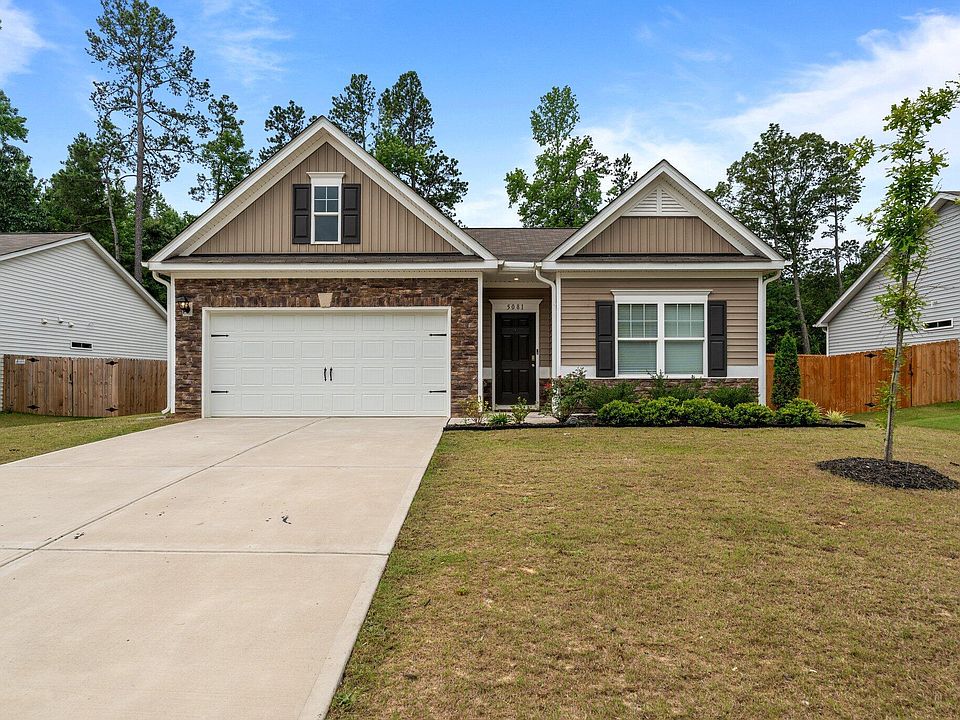 Welcome to 5081 Pioneer Drive. A beautifully like new Stone Front Ranch home in the peaceful countryside of Sanford, NC. This move-in ready home combines classic charm with modern upgrades, making it the perfect retreat for those who crave space, comfort, and style. Step inside to discover a light-filled interior featuring fresh paint and an open-concept layout that flows seamlessly from the living room into the dining and kitchen areas. The spacious kitchen boasts Sleek cabinets, Granite Countertops with ample space, ideal for both daily living and entertaining. Enjoy three generously sized bedrooms and two full bathrooms, including a primary suite with a private bath. The large laundry/mudroom adds everyday convenience, while the two-car garage and long driveway offer plenty of parking. Outside, you'll love the backyard with an open space perfect for gatherings, gardening, or simply enjoying the Carolina sunshine. Located just minutes from US-1, this home offers easy access to shopping, dining, downtown Sanford, and surrounding cities like Raleigh, Fayetteville, and Southern Pines. Up to $2,000 in Closing Cost Assistance with the use of Preferred Lender