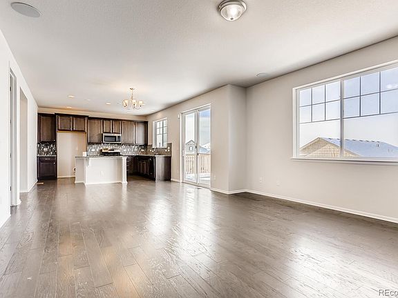 This beautiful, light/bright and almost new Richmond American Home is waiting for your personal touch! This corner lot is one of the largest in the community--landscaped with Kentucky Blue Grass and Colorado River Rock. Upon entering the property, you're greeted with your Study/Office with French doors. Down the hallway your welcoming open Living Room, Dining Room and Kitchen await. Enjoy your Gourmet Kitchen with gas stove, island, incredible backsplash and granite counters. The Dining space leads outside to a large deck; perfect for entertaining or just relaxing. The upper level features a spacious Master Suite with mountain views, tray ceiling, ceiling fan, ensuite 5 piece bathroom & large walk-in closet; 3 secondary bedrooms with walk-in closets, full bath and laundry room with its own large closet as well! The unfinished WALK OUT BASEMENT with rough-in plumbing is ready for you to finish and even potentially add a 5th bedroom and 4th bathroom! Plenty of room for storage in the meantime. Additional amenities inside the property include whole house humidifier, multiple security cameras already mounted to exterior of home, five built-in surround sound speakers in Living Room, hardwire Internet in Study and Master Bedroom, walk-out basement and three car garage. Enjoy the park just down the street where Food Trucks frequent to serve the community during the warmer months, and the High Plains Trail that begins right across the street! Pool and clubhouse are also nearby. Close to Southlands Mall and E-470; easy access to DIA. Nestled in the highly acclaimed Cherry Creek School district.