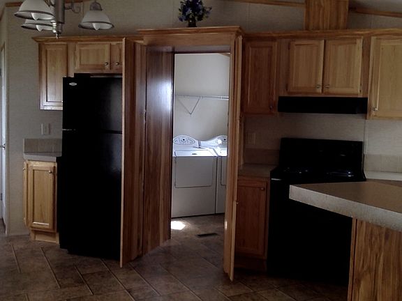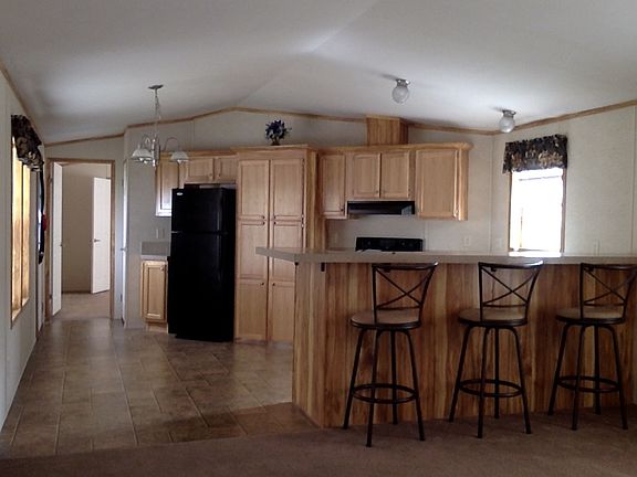 My home is a 16 x 80 Skyline, Springview mobile home. It has central heat and air, hidden laundry room and pantry, concrete siding, skylights, and all appliances except washer and dryer. There is a tall bar between the kitchen and living room, and the three bar stools stay in the home. The mobile home is not in a trailer park. It is on a rented lot that is separate from the mobile home. The home may stay on the lot with approval of the landlord.