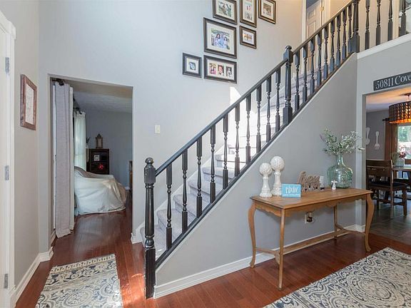 Beautifully updated and maintained home in Granger's popular Harris Crossing neighborhood. PHM schools. Gorgeous Cherry hardwood flooring throughout most of main level with recently painted gray colors. Nice library/office at front of home with built-ins along with a formal living open to the formal living room. Kitchen has a brand new range and microwave along with a newer dishwasher, white cabinetry , tile flooring, pantry and attractive counter tops. The adjoining family room has a vaulted ceiling, nice windows and a gas fireplace bordered by beautiful tile work. Upstairs are three nice size bedrooms and closet space with a recently updated family bath and brand new carpet and neutral gray colors. Very nice finished space in the lower level for family movie nights and a game of pool. Generously sized fenced backyard with recently painted deck, hot tub and shed for your yard equipment. Roof- 2015, Furnace- 2013, Water heater- 2013, New water softener, Dual septic field with diverter. New 2nd floor carpet. Updated family bath and powder room. Seller's are also including a home warranty for the new buyer's. This one will sell fast. Schedule your private showing today!