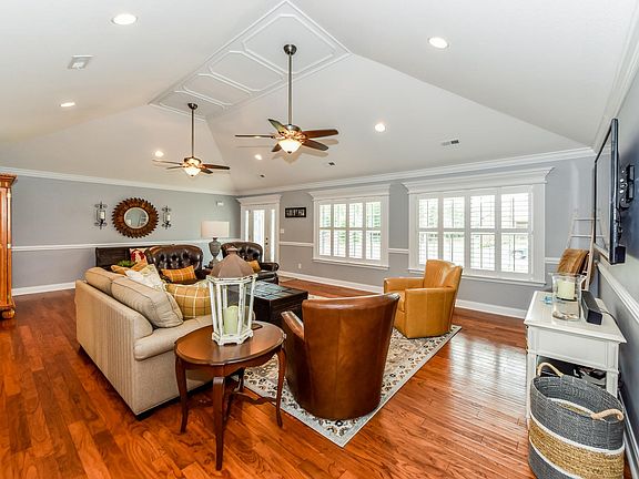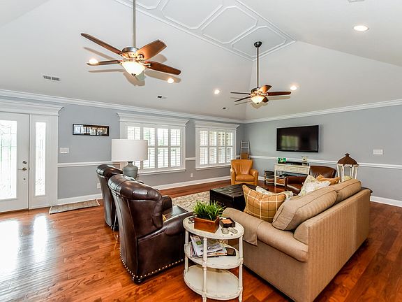 Beautifully designed 3 bedroom home with open floor plan & spacious living areas. The kitchen has abundant cabinetry, granite counters, a large island with seating, double ovens, and cooktop. The master suite has a coffered trey ceiling, jetted tub, tiled shower, and large walk in closet. The floors are easy to care for laminate and there is crown molding everywhere! If you love the outdoors you will enjoy the 18 x 36 salt water pool, fenced yard. A detached storage building can serve as a workshop, pool house, or storage area. This home has many extras including plantation shutters, an Aquasona water purification system, and professional landscaping. Located in the popular Wyndsong neighborhood with boulevard entrance and common area with picnic tables. Impressive and welcoming!