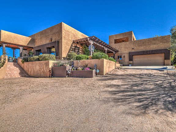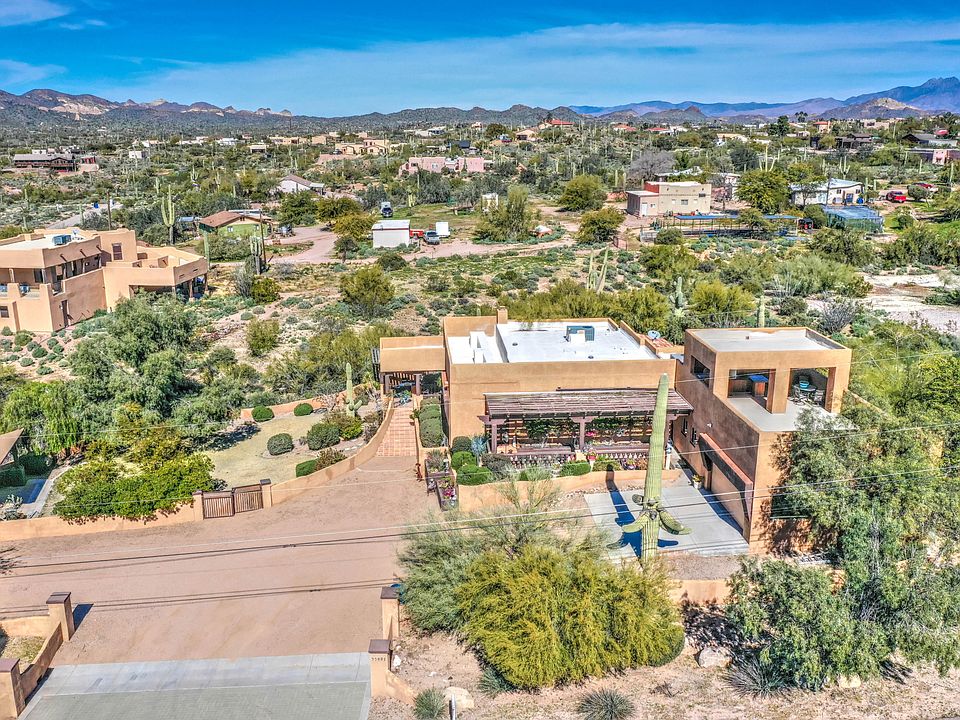 Custom single-story home w/gorgeous mountain views tucked away on 1.25 acres! This home has been well taken care of & you can tell! Offers a split floor plan w/exposed natural Vegas wood on ceilings, wood-look tile, carpet in bedrooms. Kitchen w/stainless steel appliances, double ovens, granite counter tops, & a butler's pantry. The living room offers a beautiful fireplace for chilly winter nights. Spacious master bedroom w/sitting room, master bath w/separate shower and tub w/unique double stone sinks. Master has a separate exit to the outside gardens so you can enjoy your view & outdoor fountain. Bask in every moment taking in the Superstition Mountain beauty from your upper deck, which includes a wet bar. This home has plenty of areas for entertaining & relaxing all year-round! also has a detached 1440 sf shop with guess room