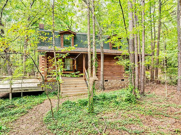Welcome home! Tucked away on over 50 acres of secluded, private land, this log cabin offers the ultimate getaway. With 4 bedrooms and 3 full baths, this home is ideal for those seeking both comfort & privacy. The great room features impressive vaulted ceilings, a charming stone fireplace, & a large bay window seat that fills the space with natural light. The kitchen is ideal for entertaining, featuring a spacious island, dual ovens, & a cozy breakfast nook with scenic views of nature. Two versatile flex spaces can be tailored to fit your needs—perfect for a home office or craft room. Skylights in the upstairs bedroom & flex room bring in the sunshine, creating a warm and welcoming ambiance throughout the home. Step outside onto the welcoming front porch or unwind on the spacious deck, soaking in the peaceful surroundings. This secluded property offers a true retreat, with two creeks flowing through the landscape, providing unmatched privacy and nature's beauty right at your doorstep.