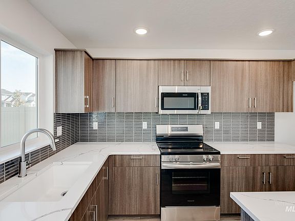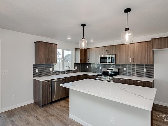Embrace the comforts of a brand new home in Meridian, Idaho. Achieve it all in the Amelia 2636! Rediscover the benefits of quality time in the open great room. The main level is ideal for hosting gatherings or a cozy night in, and the covered back patio is perfectly situated to blend outdoor unwinding and indoor relaxation. The kitchen comes with stainless steel appliances and stylish solid surface countertops, adding both functionality and aesthetics to the kitchen. Escape upstairs to find all bedrooms positioned cleverly around a large loft. The primary suite spans the full width of the home and contains an en suite bathroom and a truly impressive walk-in closet. With a thoughtful floor plan, unbeatable square footage, and an abundance of flexible living spaces, the Amelia makes it easy to love where you live. Photos are of actual home!