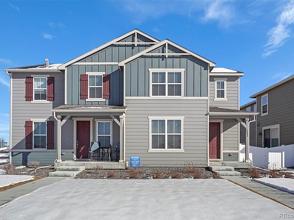 **INTEREST RATE BUY DOWN AVAILABLE** Welcome to the Villages at Southgate!! This better than new duplex, built in 2020 is the perfect blend of modern design and maintenance free living. Right when you enter you'll notice the open floor plan where your living room flows seamlessly into your kitchen. You will love having dinner or game night in your dining room which is large enough to fit even the largest dining table. As you head upstairs you come across a cozy loft area that is the perfect space to set up your home office or partake in your favorite hobby. Your large primary suite gives you pristine MOUNTAIN VIEWS to wake up to along with a gorgeous en suite bathroom. The upstairs also features 2 guest rooms, a 5 piece guest bathroom, and a designated laundry room conveniently located in the middle of it all. If that's not enough, this unit also boasts a number of bonus features such as a tankless water heater, built in doggie door, oversized 2 car finished garage with vaulted ceilings, an upgraded outdoor lighting package that allows you to customize colors so you can support your favorite sports team or holiday with the click of a button, and plenty of smart features including your garage door, thermostat, and front door dead bolt. All of this plus an incredible location with Prairie View middle and high school right down the street, and you are only a short drive to Prairie Center, Downtown Denver, and DIA. No detail was overlooked in this home. Stop by today!