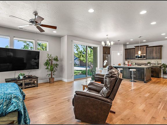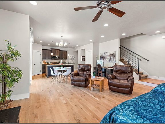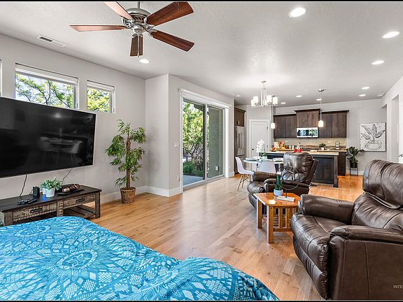 Introducing this well-priced East End townhome nestled in the desirable Mill District Square of Harris Ranch. Located just a block away from the scenic Boise Greenbelt, as well as popular local spots like Lucky 13 & The Stil, this residence offers the perfect blend of convenience & charm. Situated on a corner lot, enjoy added privacy & space from neighbors while relishing in the open floor plan of this two-story home. The main level boasts 9-foot ceilings, gleaming hardwood floors, & upscale finishes throughout. The modern kitchen features sleek cabinets, quartz countertops, a spacious island, Bosch appliances, & a large pantry. A tech nook & half bath complete the main level. Upstairs, discover a generously sized master suite & a junior master suite, each offering walk-in closets, ensuite bathrooms, & tray ceilings. The expansive 2-car garage provides ample storage space & boasts 13-foot ceilings for added overhead storage options. Residents of this community enjoy access to two pools & two clubhouses.