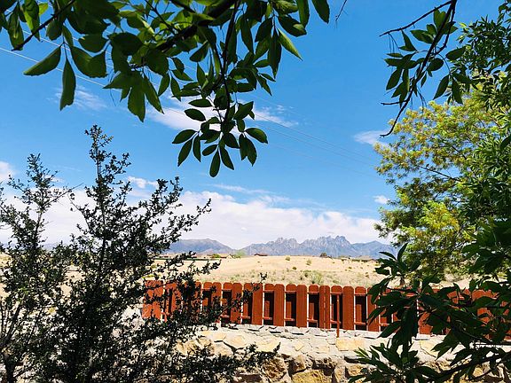Look no further for the Perfect Retreat! This lovely home, nestled on a quiet cul-desac features the finest upgrades possible to extend the value and enjoyability of your home for years to come! Complete with a full Metal Roof, Refrigerated Air, Wood & Vinyl Siding; Long lasting Brick exterior. Convenient Built-In Vacuum System for the whole home! Private Master Suite upstairs has it's own AC/Heater Mini-split, large walk-in closet & Cov'd Balcony to enjoy the beautiful views of the Organ Mountains! Enjoy built-in reverse osmosis filtered water, gas log brick fireplace & a completely enclosed porch w 3 exterior doors in addition to Front & back cov'd patios make for year round enjoyment of our great weather! Low Maintenance landscaping abounding in luscious trees from Apricot, Fig, Peach, Apple, Ash & Oak just to name a few! Auto drip system for ALL plants & trees front & back! Garage features built in work benches, utility sink & pull down stairs to a huge lighted attic! Storage galore! Call now for appt