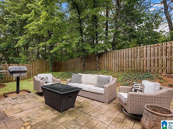 Beautiful scenic area of B'ham and gorgeous one level home with 2330+/- feet. Extra rooms- study or office, etc. off master suite-large, bonus rm off very roomy living room with columns w/classic design, all stainless appl. remain, w/d room, closet storage in 2 car garage, extra concreted driveway parking, 6 ft fenced yard w/2 gates for privacy, concreted patio for outdoor fun, double paned windows with screens, plantation shutters, large eat-in area off kitchen, double door pantry in kitchen, extra built-in desk area with glassed cabinetry above, decorator tiled back splash in kitchen, stone counters, decorator kitchen cabinetry, walk-in m. closet, fireplace w/gas for cozy nights, community pool, private lake, scenic walking paths in area.