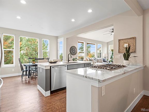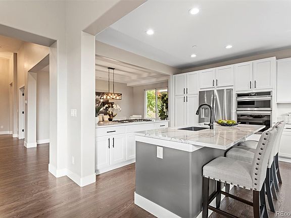 Welcome home to this stunning newly remodeled custom property in The Village at Castle Pines! As you come inside you’ll find an amazing gourmet kitchen featuring all new appliance, dual oven combination, Bosch gas cooktop, refrigerator, new quartz countertops, large center island, dining room, living room, complete with hardwood floors throughout and a beautiful new deck, perfect for entertaining. The main floor master suite features a gorgeous new ensuite master bath, custom tile throughout, and large walk-in closet. On the main floor you will also find another bedroom, office, full bathroom, laundry room, with a third car garage or golf cart storage. Come downstairs to the beautiful walkout basement complete with a new secondary master bedroom, tranquil ensuite master bath featuring gorgeous floor to ceiling tile, a gigantic entertainment and game room complete with a wine bar, another bedroom, gorgeous bathroom, and a covered patio looking out into the backyard also backing to open space. Also, maintenance free* The Village at Castle Pines is an exceptional residential gated community with spectacular views of Pikes Peak, Mount Evans, and the Rocky Mountains. World class amenities include 3 pools, a state of the art fitness facility, tennis, pickle ball, pocket parks, and walking & biking trails throughout. The community is gated and staffed with 24/7 emergency services and alarm monitoring tied to your security system. Two signature nationally rated Jack Nicklaus private golf courses can be found in The Village Castle Pines; the newly renovated Country Club at Castle Pines and The Castle Pines Golf Club make for an unmatched golf experience. This is a quiet forested retreat with easy access to Denver and Colorado Springs, 15 minutes to Park Meadows, 20 minutes to DTC, and highly rated Douglas County Schools.