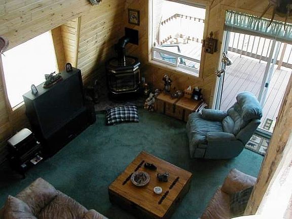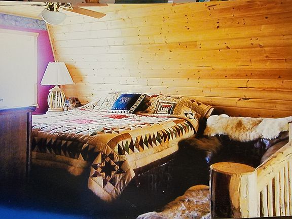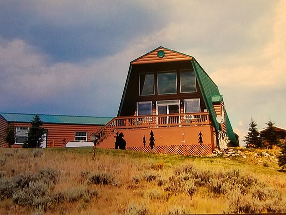 Beautiful steel log sided home with Trex decking, with gorgeous view of Henry's Lake. No Maintenance. The view is fantastic and will always be there. Double car garage is finished and has a large BR, Game room, Storage behind 384 sq ft. The staircase is hand peeled logs, gorgeous. Lovely groves of Aspen and pine trees on the property. The asphalt driveway is a major save on ckeanup, no gravel or durt tracked into home. All furniture stays with home, just move in and go fishing. NO realators please. We are open to negotiations!