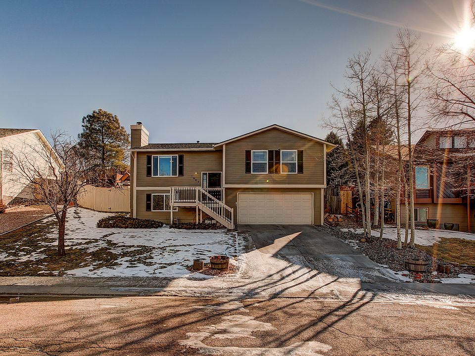 Amazing and completely updated home in desirable Old Farm Neighborhood! This home has stainless steel appliances in the beautiful kitchen, newly remodeled fireplace surround in family room, and breath-taking views of Pikes Peak and the Front Range. With central A/C with a Nest thermostat, a retractable awning off the large back deck, a hidden movie screen built into the living room, very private backyard, and newer interior paint with updated trim and 6-panel doors, this home is move-in ready! Come and see this home today! Almost everything new with this home: roof, gutters, driveway concrete, front deck stairs and railing, skylight, wood-burning fireplace tile remodel, and water heater! All new interior paint recently done throughout the home. Newer light fixtures and ceiling fans in living room and all upstairs bedrooms. Oversized garage with workbench. Sprinkler System installed! Central A/C! Master Bedroom has on-suite to upstairs bathroom. Washer and dryer included! 4th bedroom in lower level has on-suite bathroom, just no closet. Newer flooring throughout home. Buyer to verify square footage measurements. You will love this home!